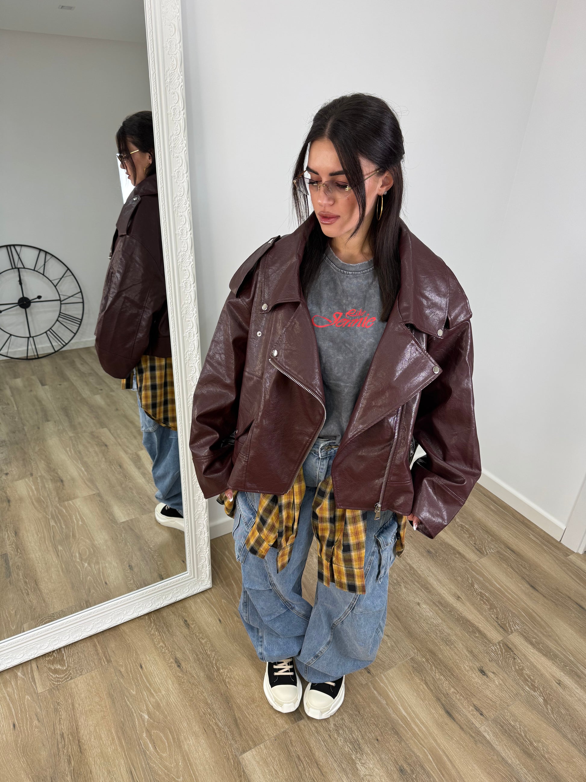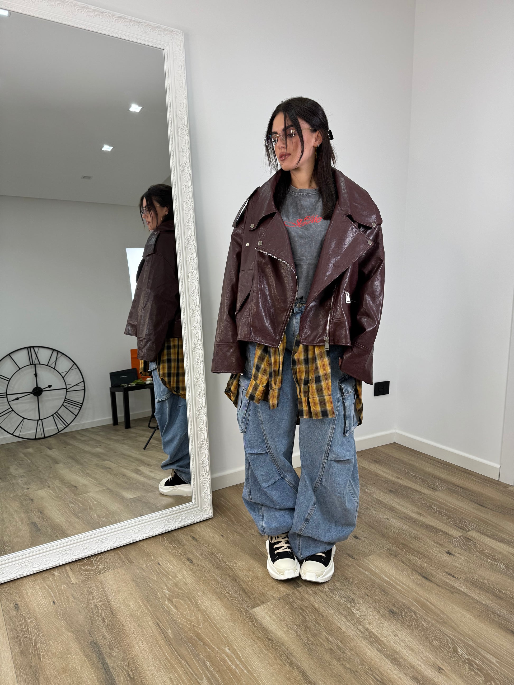 Questo chiodo oversize in elegante bordeaux si distingue per la sua manica ampia, che conferisce un look moderno e sofisticato. Realizzato per offrire comfort senza rinunciare allo stile, è ideale per chi cerca un capo versatile e di tendenza da inserire nel guardaroba autunnale e invernale. La vestibilità ampia permette facilità di movimento e stratificazione, rendendolo una scelta esperta per outfit sia casual che più ricercati.