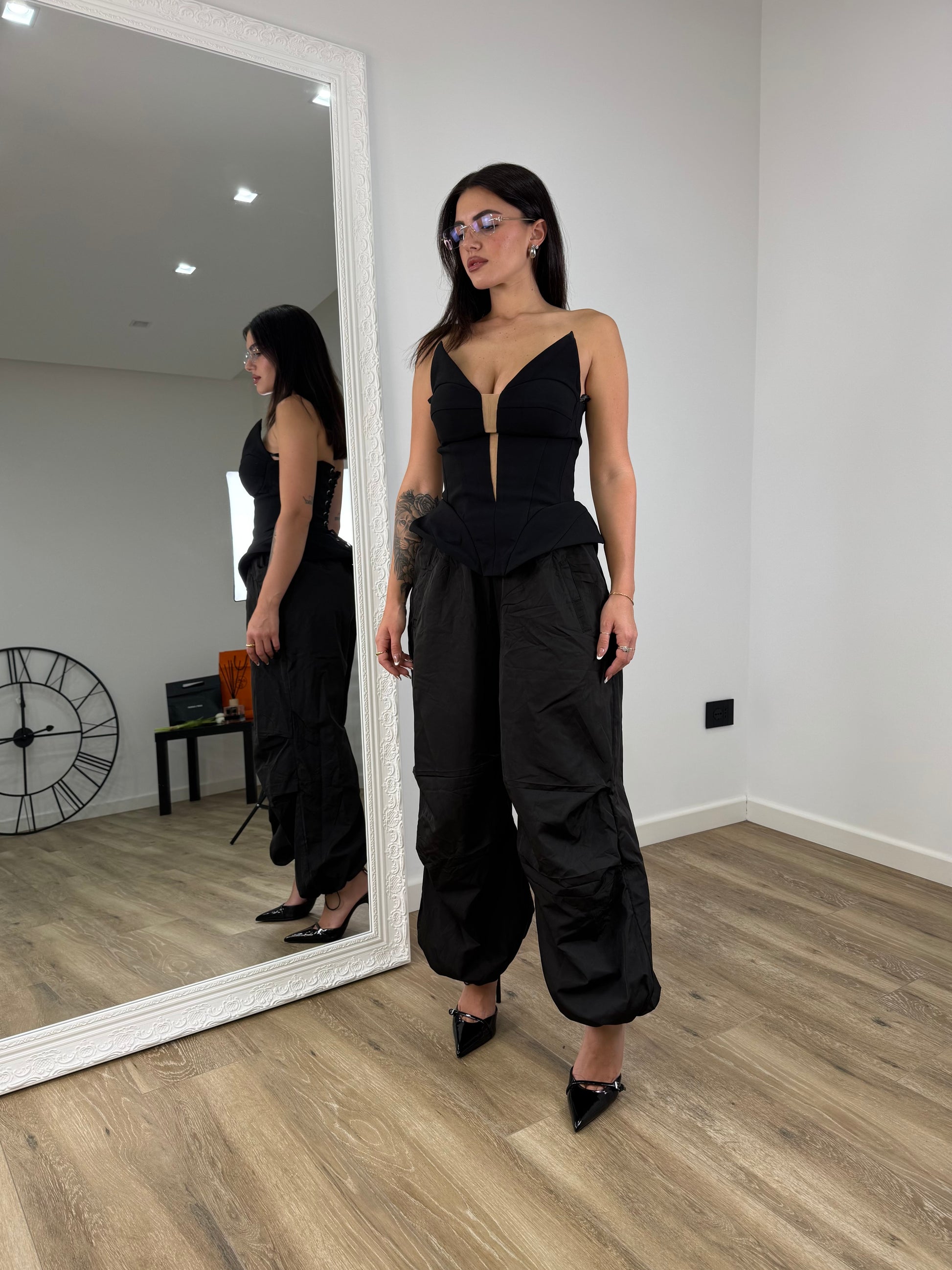 Il Corpetto Madame si distingue per il raffinato dettaglio e la chiusura regolabile sul retro, che garantisce una vestibilità personalizzata e confortevole. Progettato per valorizzare la silhouette, questo capo unisce eleganza e funzionalità, ideale per conferire un tocco sofisticato a qualsiasi outfit.